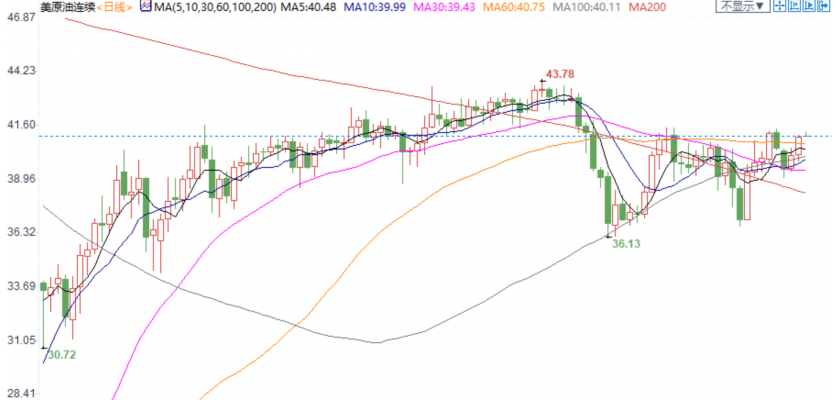 技术面来看,美油触及四日高点,但动能不强,未来一段时间油价仍处于38-43美元/桶的区间波动状态。