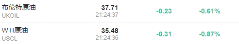 消息公布后,截至发稿,WTI原油跌幅收窄至0.87%报35.48美元/桶;布伦特原油跌幅收窄至0.61%报37.71美元/桶。