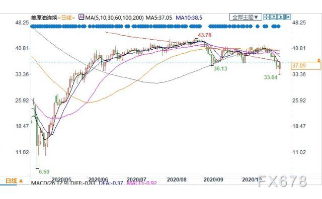 美国WTI 12月原油期货电子盘价格周一(11月2日)收盘上涨1.3美元,涨幅3.63%,报37.09美元/桶。油价周一反弹逾3%,在美国总统大选投票即将结束的前一天反弹,此前由于对冠状病毒病例上升的担忧,油价连续几天下跌。