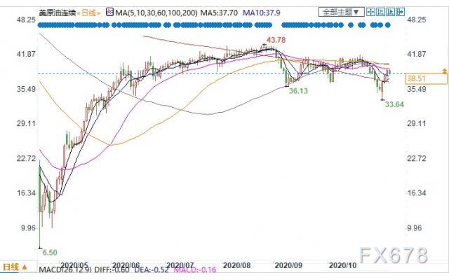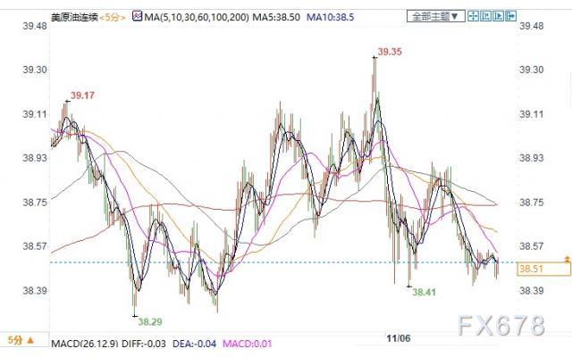 美国WTI 12月原油期货电子盘价格周四(11月5日)收盘下跌0.64美元,跌幅1.63%,报38.51美元/桶。油价周四下跌逾1%,受新冠感染病例持续上升以及美国总统大选结果尚未确定影响。
