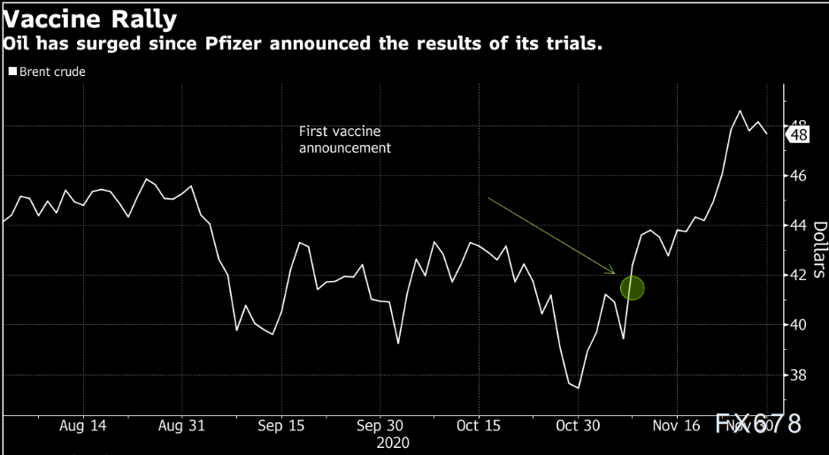 Moderna表示,将于周一为其研发的新冠疫苗在美国和欧盟申请紧急使用授权,此前一项后期研究的完整结果显示,该疫苗有效率为94.1%,且没有严重的安全问题。该消息提升投资者对战胜新冠疫情的信心,给油价提供中长线支撑,也吸引投资者逢低买入原油。