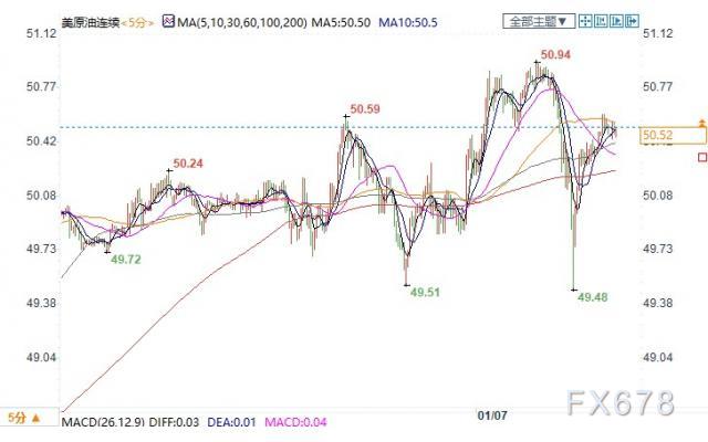 美国WTI 2月原油期货电子盘价格周三(1月6日)收盘上涨0.59美元,涨幅1.18%,报50.52美元/桶。油价周三升至2月以来最高水平,此前沙特宣布自愿大幅减产,且美国原油库存骤降。