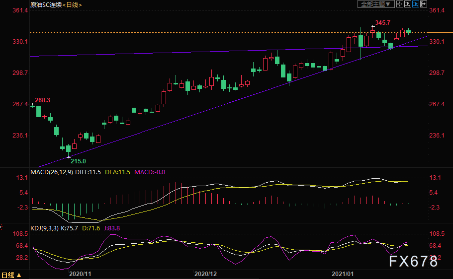 阻力位:INE原油345.7,美油53.93