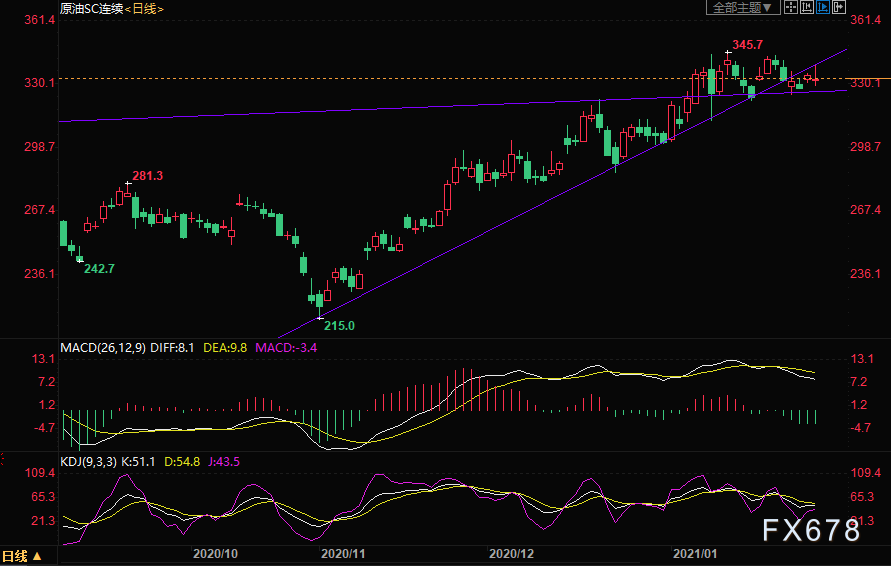 阻力位:INE原油345.7,美油53.93