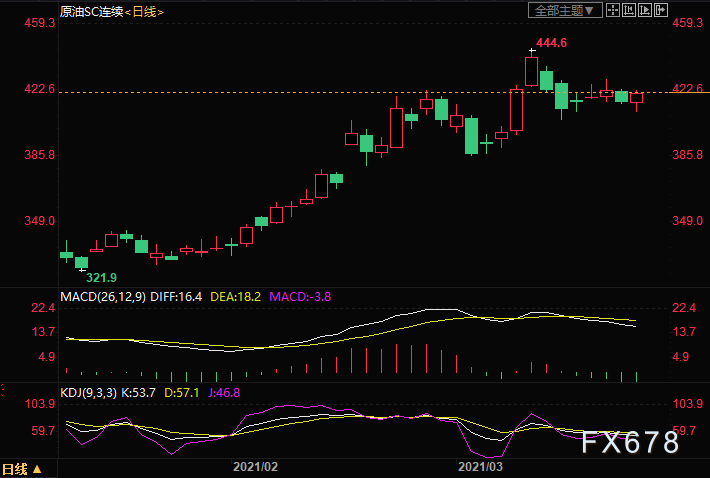 阻力位:INE原油430,美油65.55