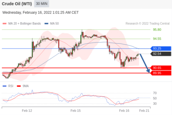 交易策略: 在 93.25 之下,看跌,目标价位为 90.65 ,然后为 89.95 。