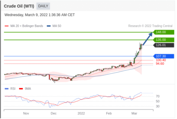 交易策略: 在 107.30 之上,看涨,目标价位为 135.00 ,然后为 148.00 。