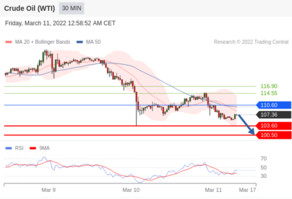 交易策略: 在 110.60 之下,看跌,目标价位为 103.60 ,然后为 100.50 。