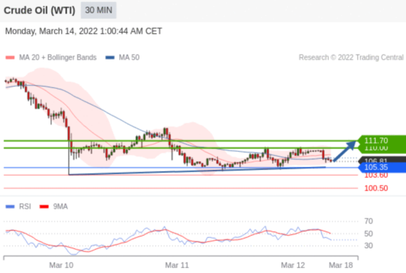交易策略: 在 105.35 之上,看涨,目标价位为 110.00 ,然后为 111.70 。