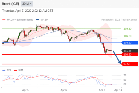交易策略: 在 104.20 之下,看跌,目标价位为 100.50 ,然后为 97.50 。