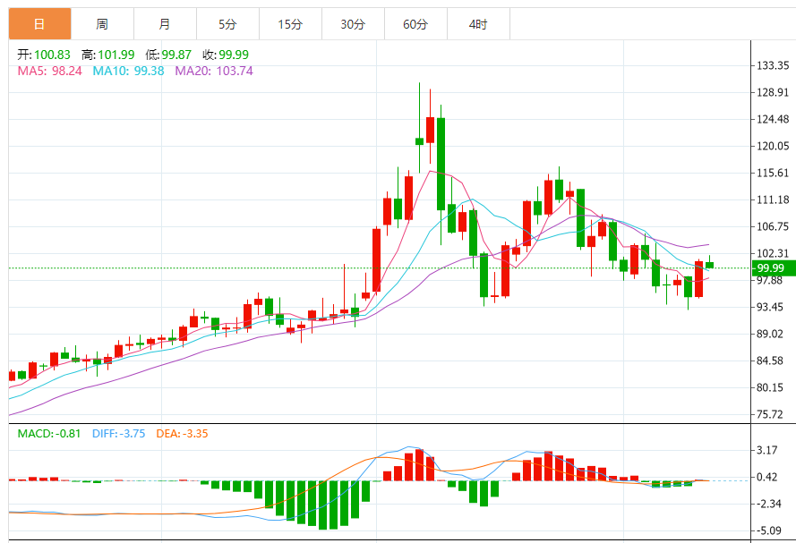 今日预期交易区间在 98.95 支撑位和 104.60 阻力位之间。