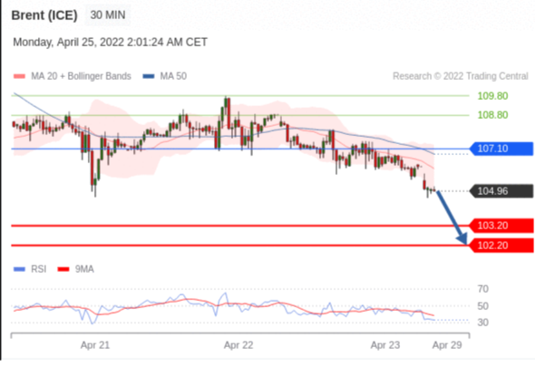 交易策略: 在 107.10 之下,看跌,目标价位为 103.20 ,然后为 102.20 。
