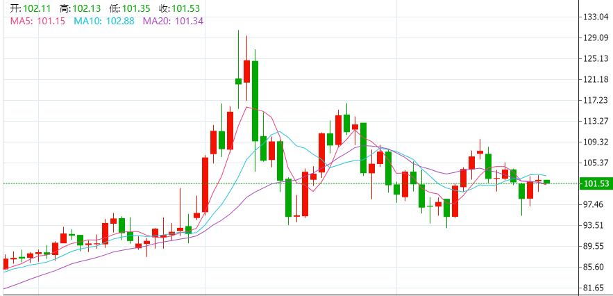 从4小时图级别看,油价在从3月高点126.51以来并连接3月24日高点115.87美元的以来的趋势线获得大量买盘后强势反弹。之后价格大幅升破自4月18日高点109.13美元以来并连接4月21日高点105.24美元的轻微趋势线。20和200EMA均线相互交叉,暗示后市将区间波动。