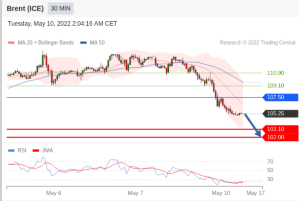 交易策略: 在 107.50 之下,看跌,目标价位为 103.10 ,然后为 102.00 。