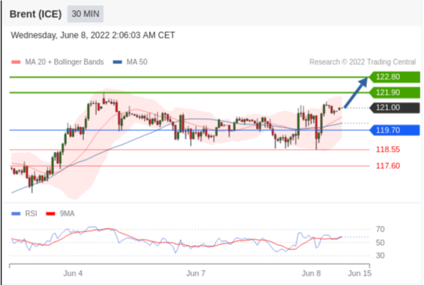 交易策略: 在 119.70 之上,看涨,目标价位为 121.90 ,然后为 122.80 。