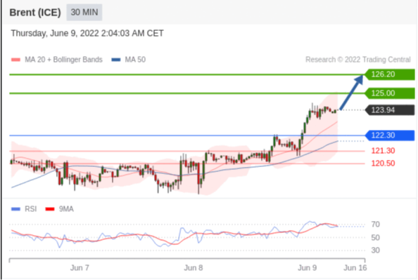 交易策略: 在 122.30 之上,看涨,目标价位为 125.00 ,然后为 126.20 。