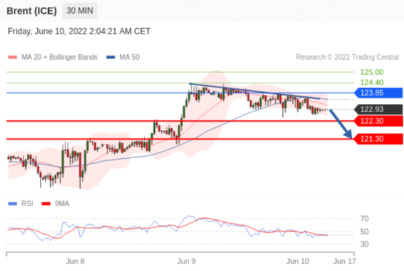 交易策略: 在 123.85 之下,看跌,目标价位为 122.30 ,然后为 121.30 。