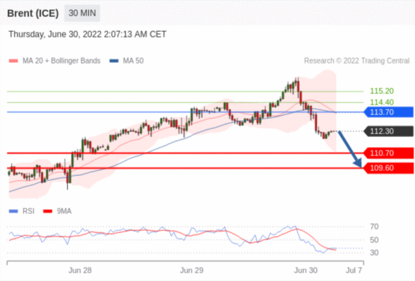 交易策略: 在 113.70 之下,看跌,目标价位为 110.70 ,然后为 109.60 。