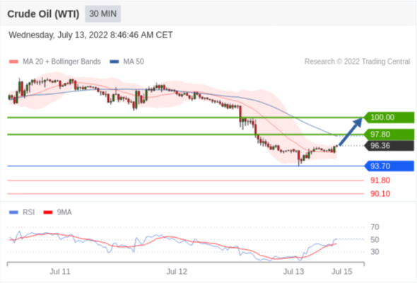 交易策略: 在 93.70 之上,看涨,目标价位为 97.80 ,然后为 100.00 。