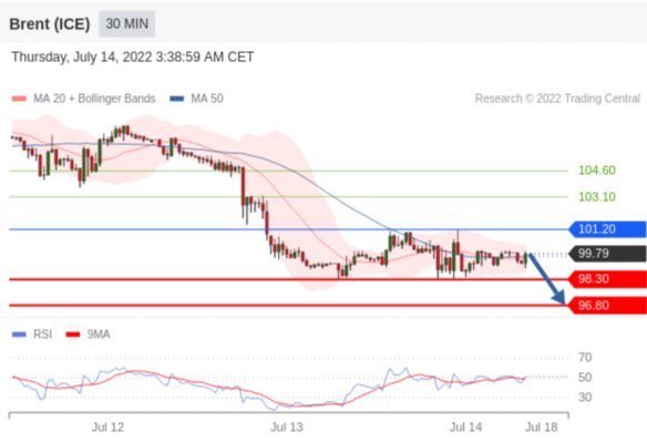 交易策略: 在 101.20 之下,看跌,目标价位为 98.30 ,然后为 96.80 。