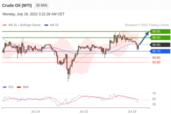 交易策略: 在 95.70 之上,看涨,目标价位为 98.00 ,然后为 99.05 。