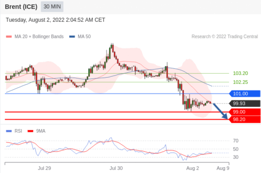 交易策略: 在 101.00 之下,看跌,目标价位为 99.00 ,然后为 98.20 。