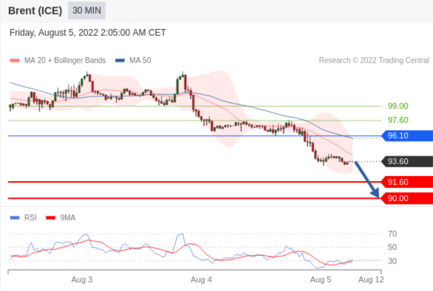 交易策略: 在 96.10 之下,看跌,目标价位为 91.60 ,然后为 90.00 。