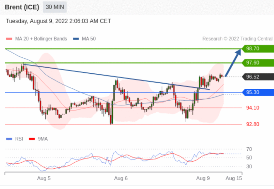 交易策略: 在 95.30 之上,看涨,目标价位为 97.60 ,然后为 98.70 。