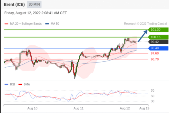 交易策略: 在 98.40 之上,看涨,目标价位为 100.15 ,然后为 101.30 。