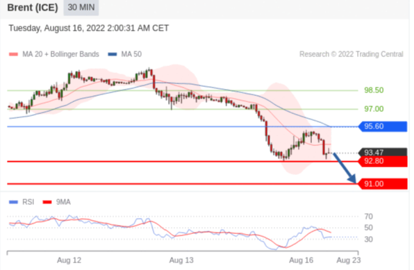 交易策略: 在 95.60 之下,看跌,目标价位为 92.80 ,然后为 91.00 。