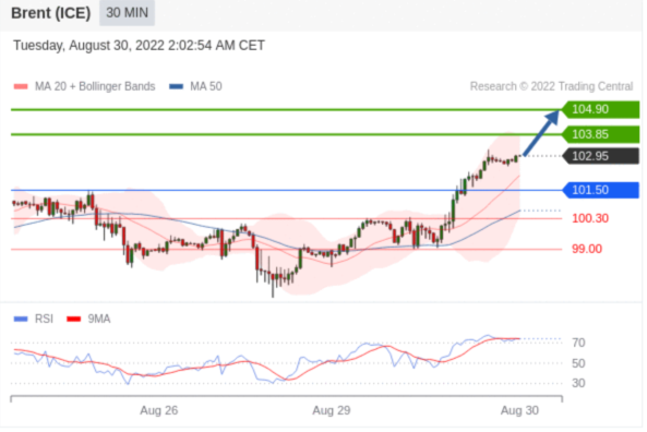 交易策略: 在 101.50 之上,看涨,目标价位为 103.85 ,然后为 104.90 。