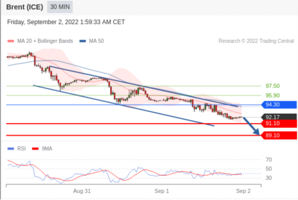 交易策略: 在 94.30 之下,看跌,目标价位为 91.10 ,然后为 89.10 。