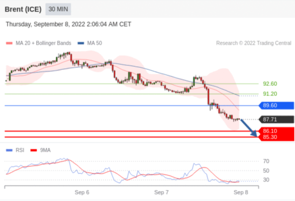 交易策略: 在 89.60 之下,看跌,目标价位为 86.10 ,然后为 85.30 。