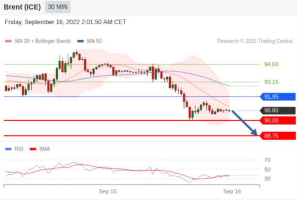交易策略: 在 91.95 之下,看跌,目标价位为 90.00 ,然后为 88.75 。