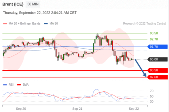 交易策略: 在 91.70 之下,看跌,目标价位为 88.50 ,然后为 87.60 。