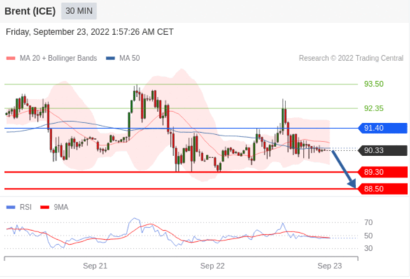 交易策略: 在 91.40 之下,看跌,目标价位为 89.30 ,然后为 88.50 。