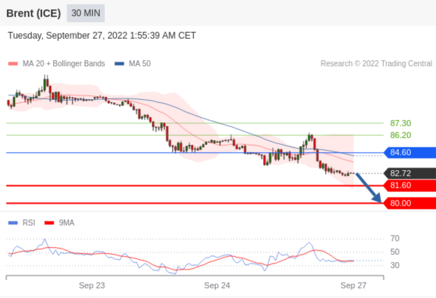 交易策略: 在 84.60 之下,看跌,目标价位为 81.60 ,然后为 80.00 。