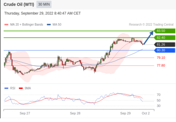交易策略: 在 80.30 之上,看涨,目标价位为 82.40 ,然后为 83.50 。