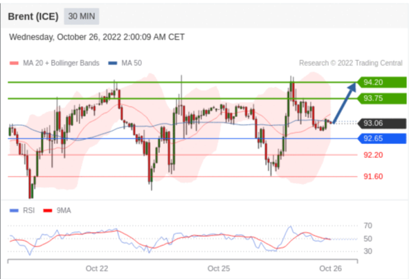 布伦特原油 (ICE) (Z2) 当日内交易策略: 在 92.65 之上 目标价位为 93.75(20221026)
