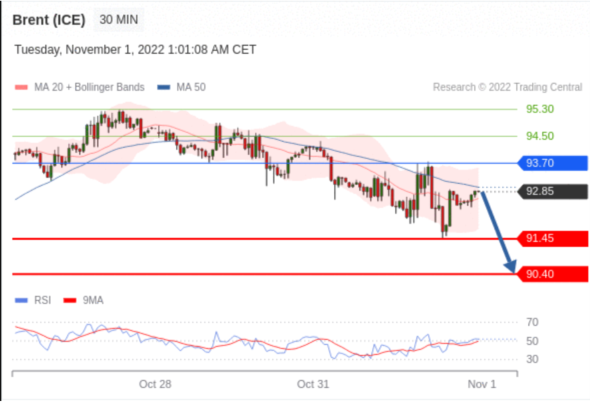 交易策略: 在 93.70 之下,看跌,目标价位为 91.45 ,然后为 90.40 。