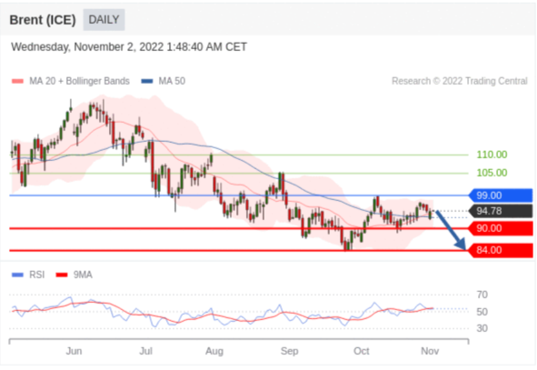 交易策略: 在 99.00 之下,看跌,目标价位为 90.00 ,然后为 84.00 。