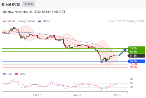 交易策略: 在 86.50 之上,看涨,目标价位为 88.80 ,然后为 89.60 。