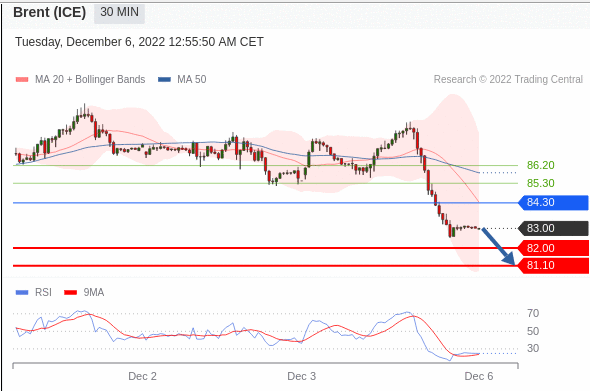 交易策略: 在 84.30 之下,看跌,目标价位为 82.00 ,然后为 81.10 。