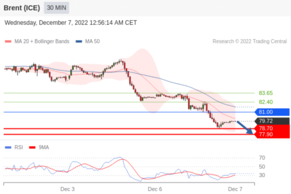 交易策略: 在 81.00 之下,看跌,目标价位为 78.70 ,然后为 77.90 。