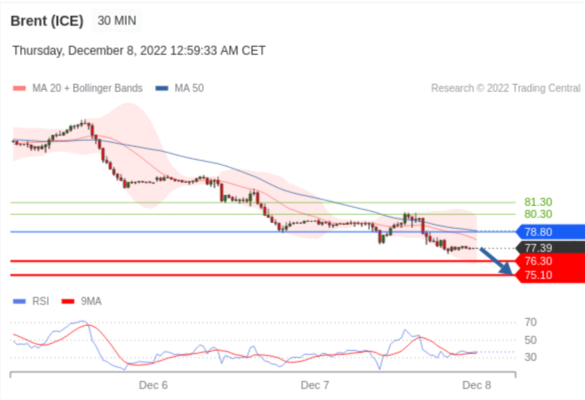 交易策略: 在 78.80 之下,看跌,目标价位为 76.30 ,然后为 75.10 。