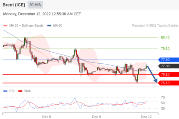 交易策略: 在 77.80 之下,看跌,目标价位为 76.10 ,然后为 75.10 。