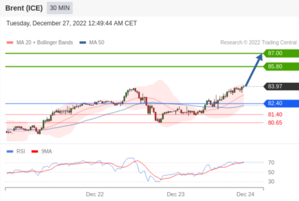 交易策略: 在 82.40 之上,看涨,目标价位为 85.80 ,然后为 87.00 。