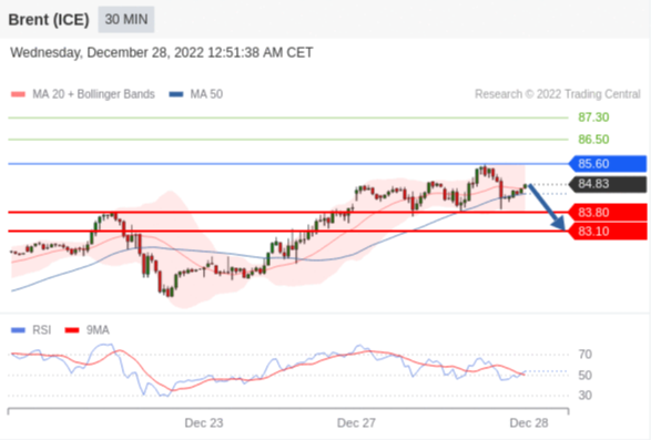 交易策略: 在 85.60 之下,看跌,目标价位为 83.80 ,然后为 83.10 。
