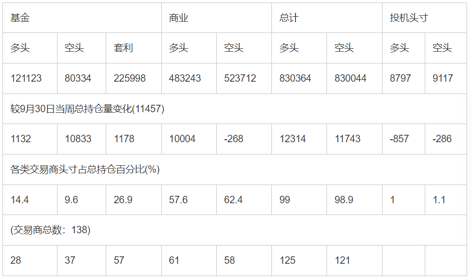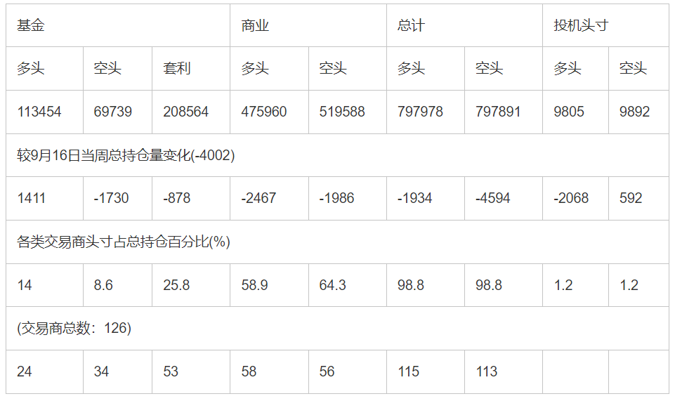截止9月23日当周洲际交易所(欧洲)原油期货分类持仓报告: