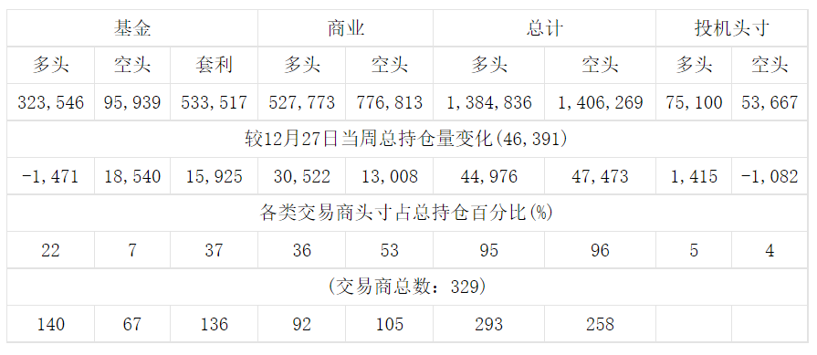 美国商品期货交易委员会(CFTC)最新公布截止12月27日当周NYX原油期货分类持仓报告: 合约单位:1000桶总持仓量:1413545